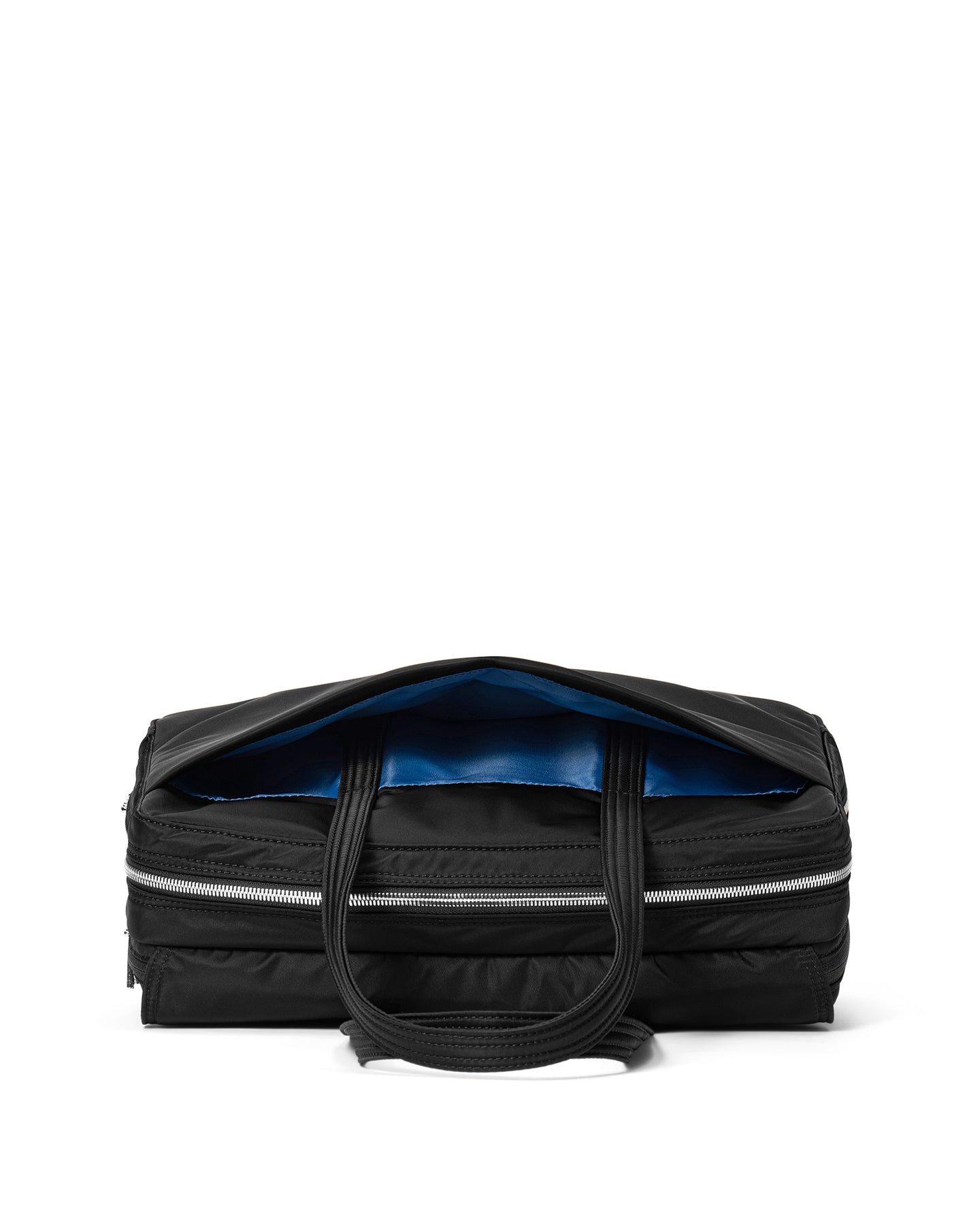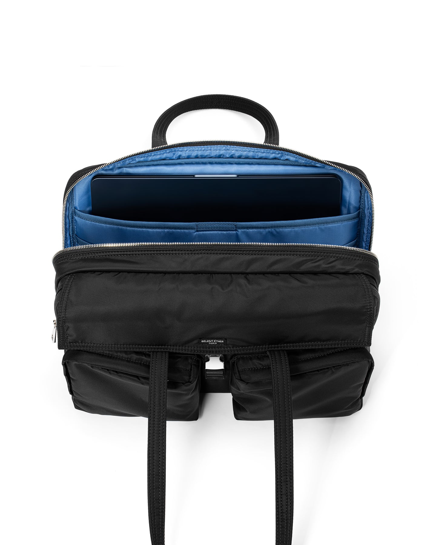 鮮やかなブルーのライニングが、ブラックボディに洗練されたコントラストを生み出します。